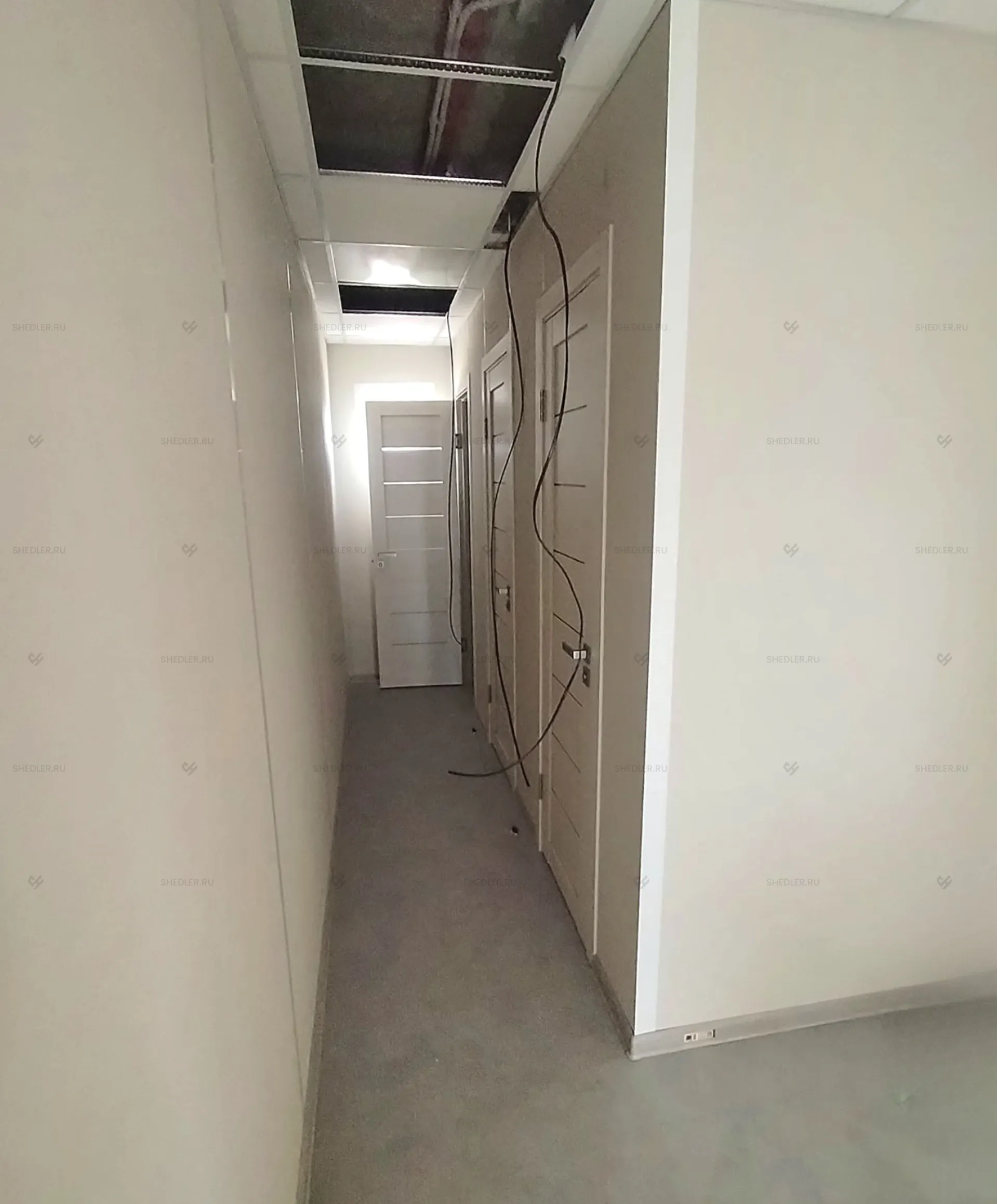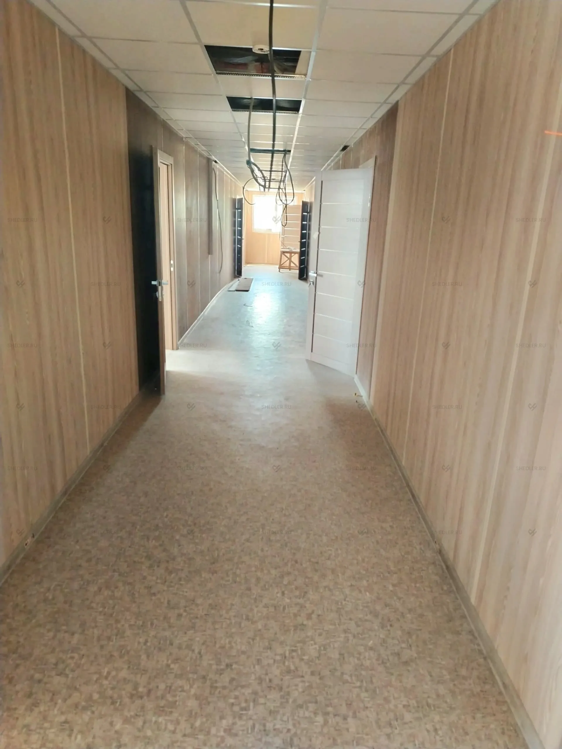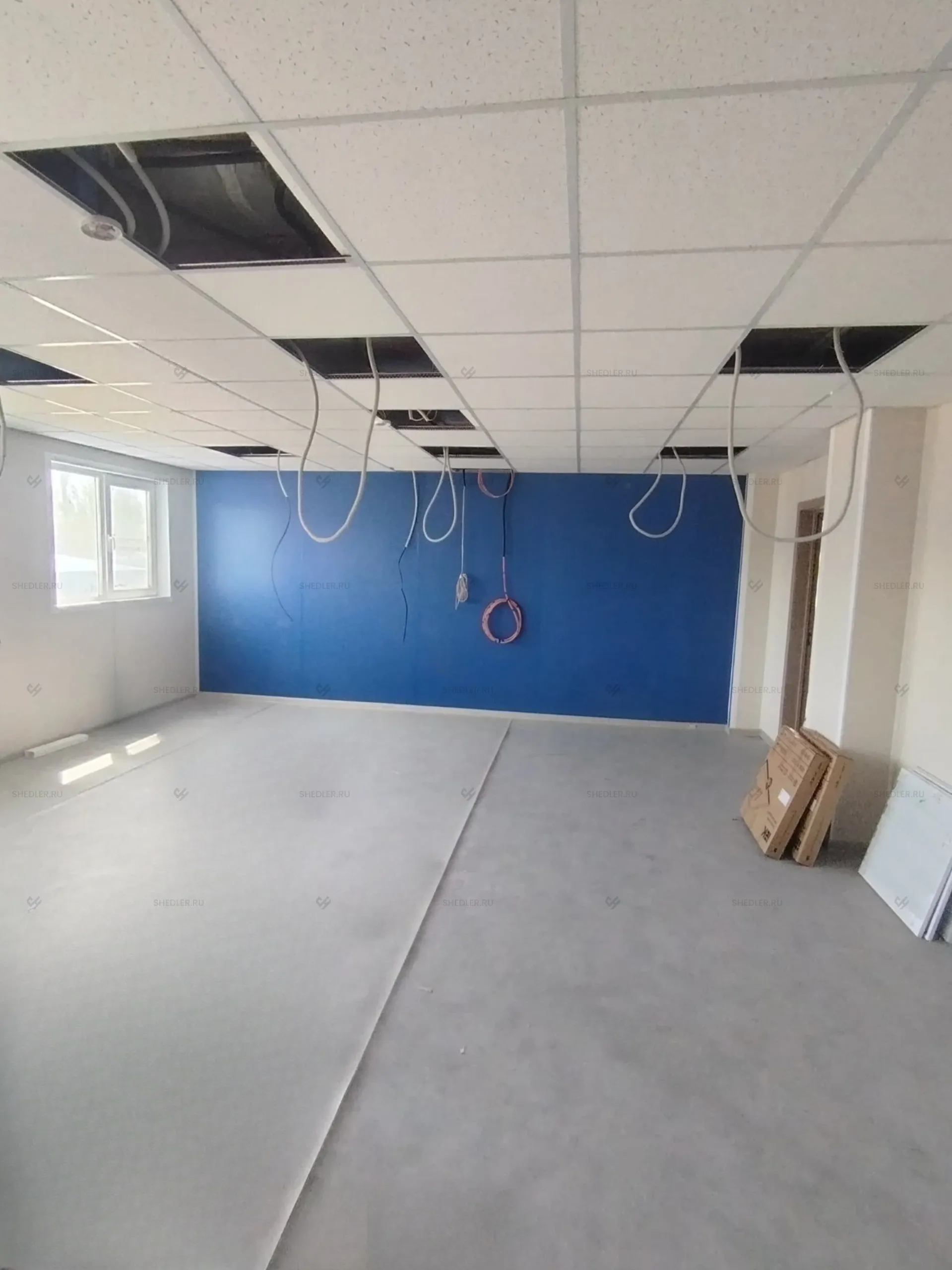 Внутри звуко- и теплоизоляция URSA TERRA, внутренняя отделка — комбинация СМЛ-панелей и сэндвичей с декоративными профилями. Каждый элемент продуман, от влагостойкой отделки душевых и туалетов до дизайнерского линолеума в переговорных и приемных. Потолки подвесные Armstrong, окна ПВХ с москитными сетками, а двери МДФ и металлические, с надежной фурнитурой.