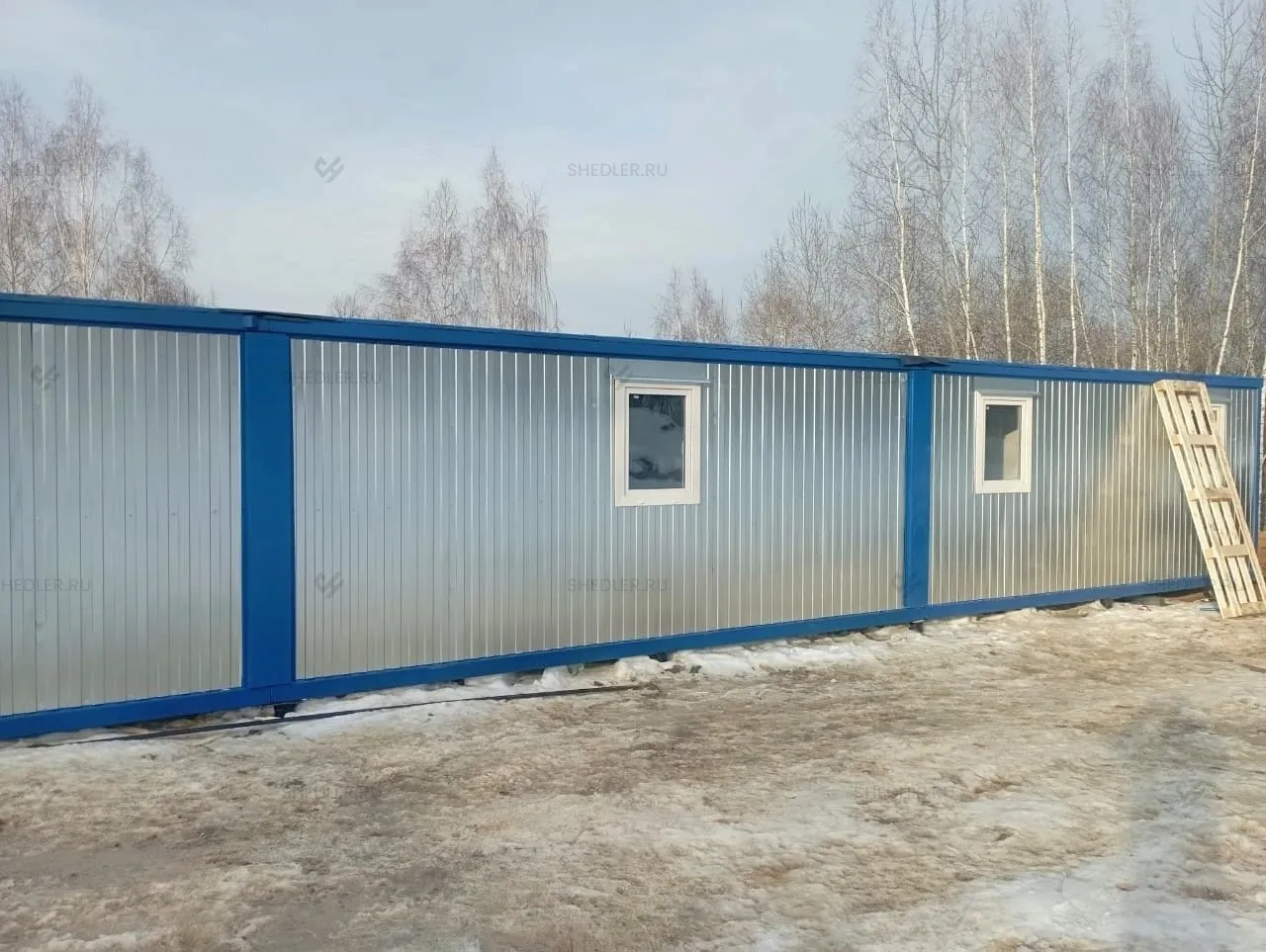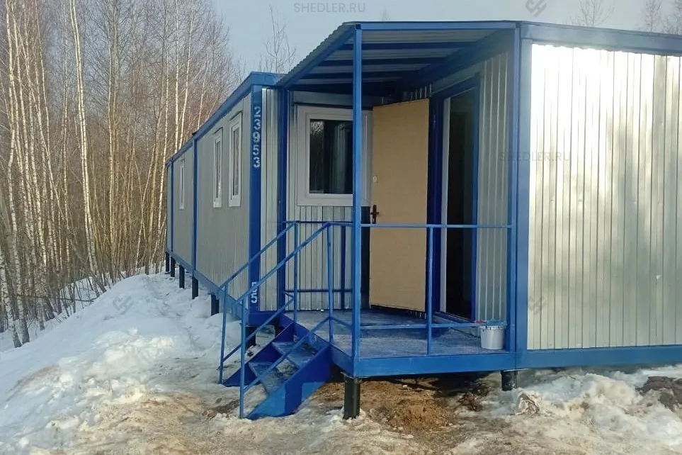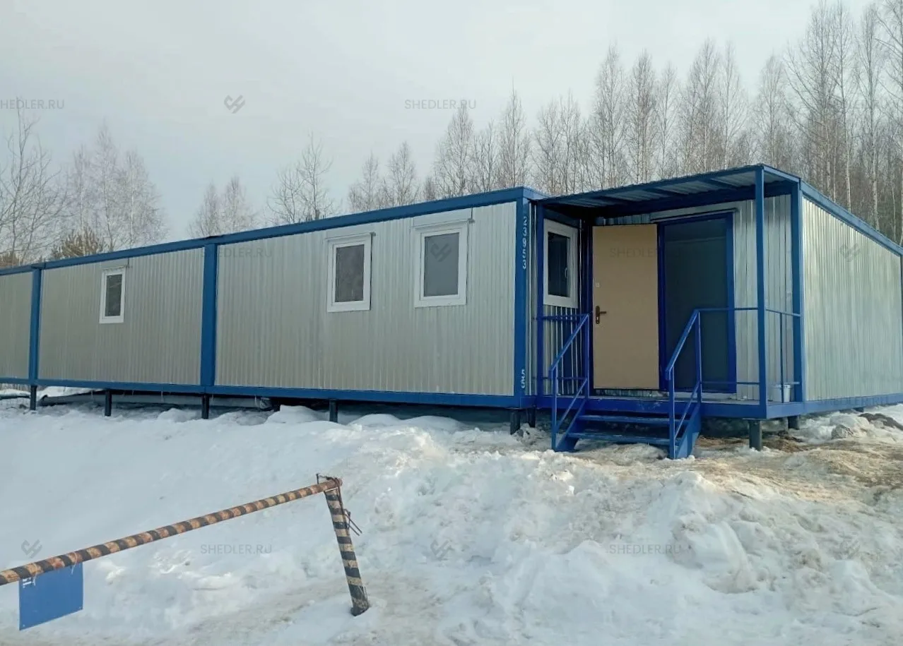 В конце декабря прошлого года к нам обратился заказчик, которому необходимо было модульное здание. Отличным решением стала постройка, состоящая из восьми блок контейнеров общей площадью 114,5 кв. м с крышей из сварного листа толщиной 0,7 мм синего цвета и дном из оцинкованного профлиста С8.