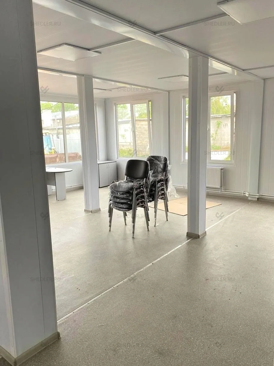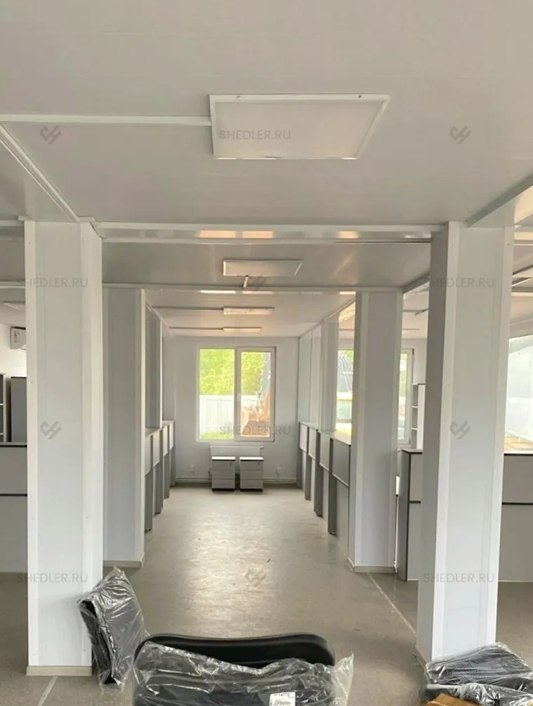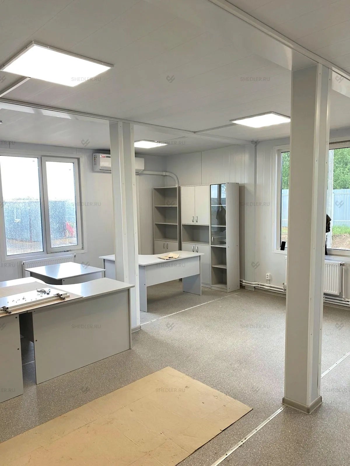 Также здание оборудовано внутренними каркасно-щитовыми перегородками с утеплением 100 мм, обшитыми белой ПВХ панелью.