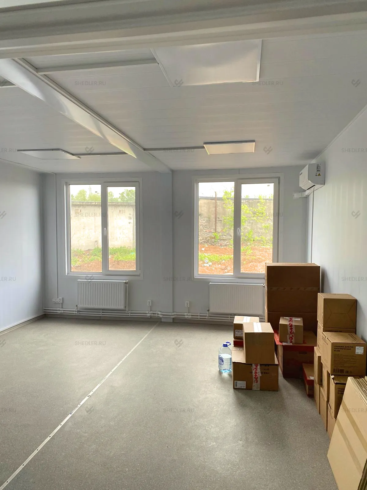 Дополнительно в модульном здании была выполнена пароизоляция мембраной Гидропроф В, а также тепло- звукоизоляция пола и потолка материалом УРСА TERRA 100 мм, что позволит использовать здание даже при неблагоприятных погодных условиях.