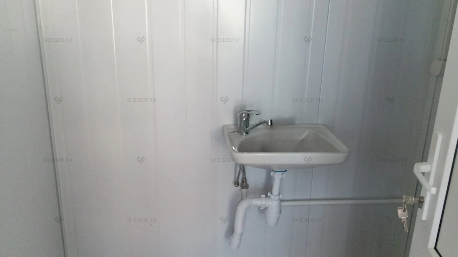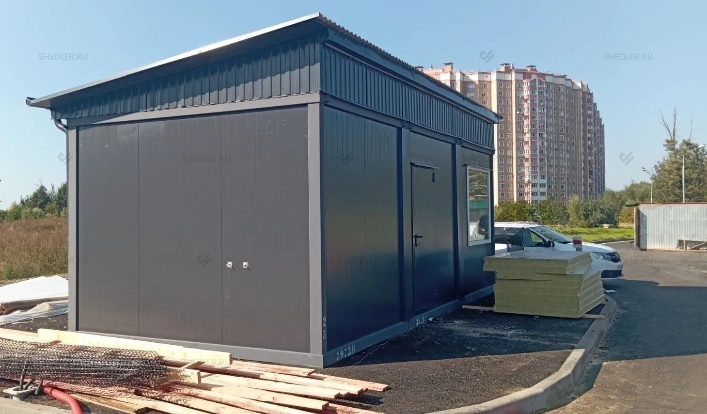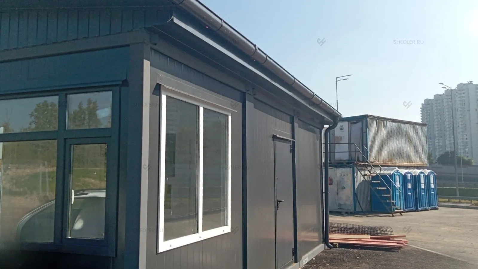 Отличным вариантом стало модульное здание размером 7,35 х 3,6 м и общей площадью 26,46 кв.м, состоящее из 2-х блок-контейнеров.