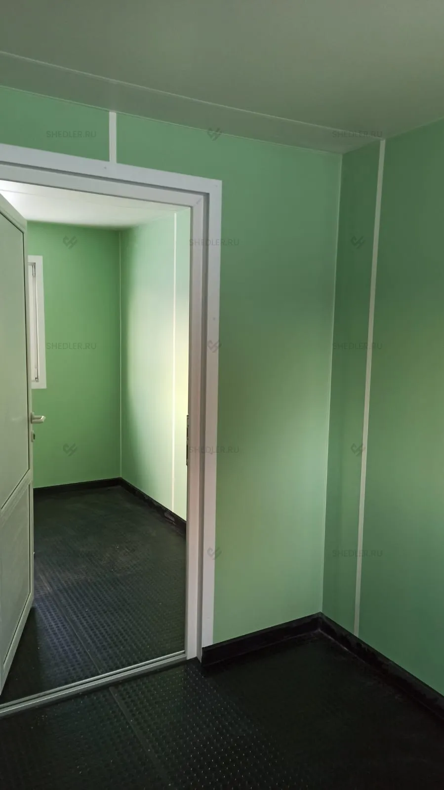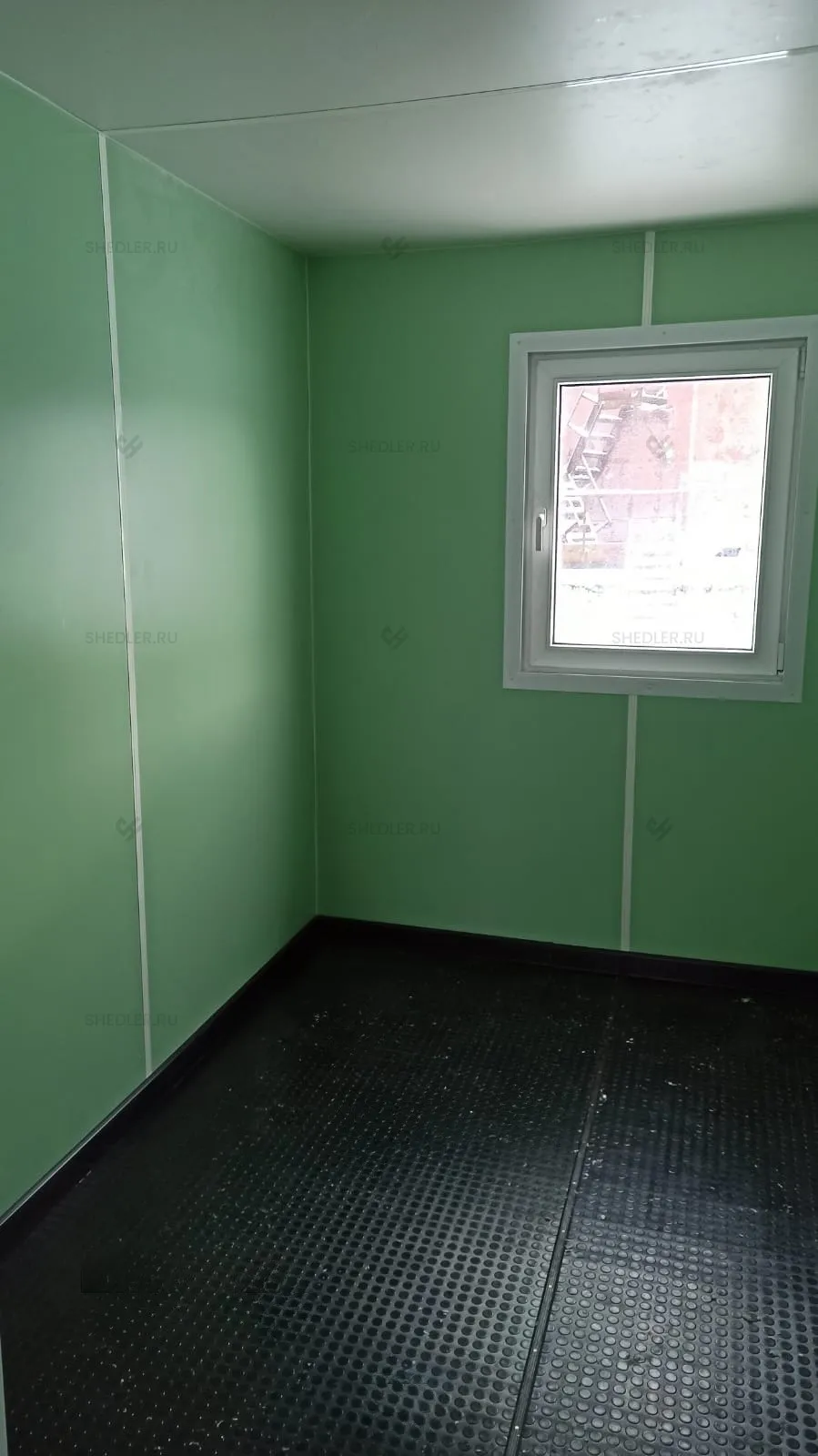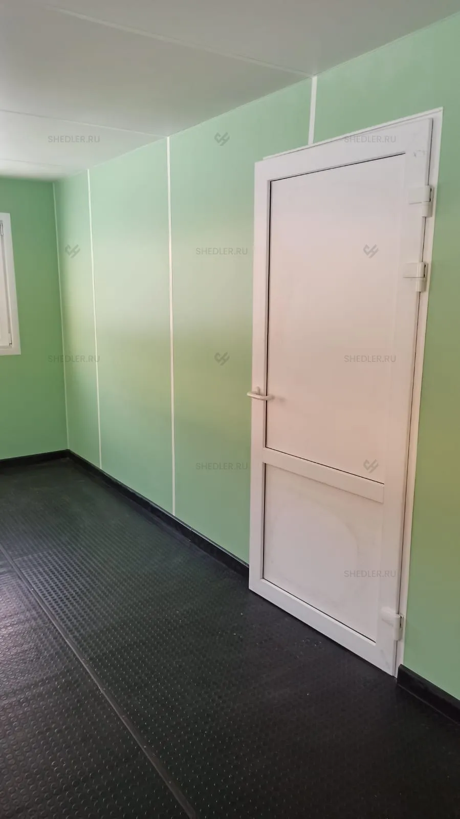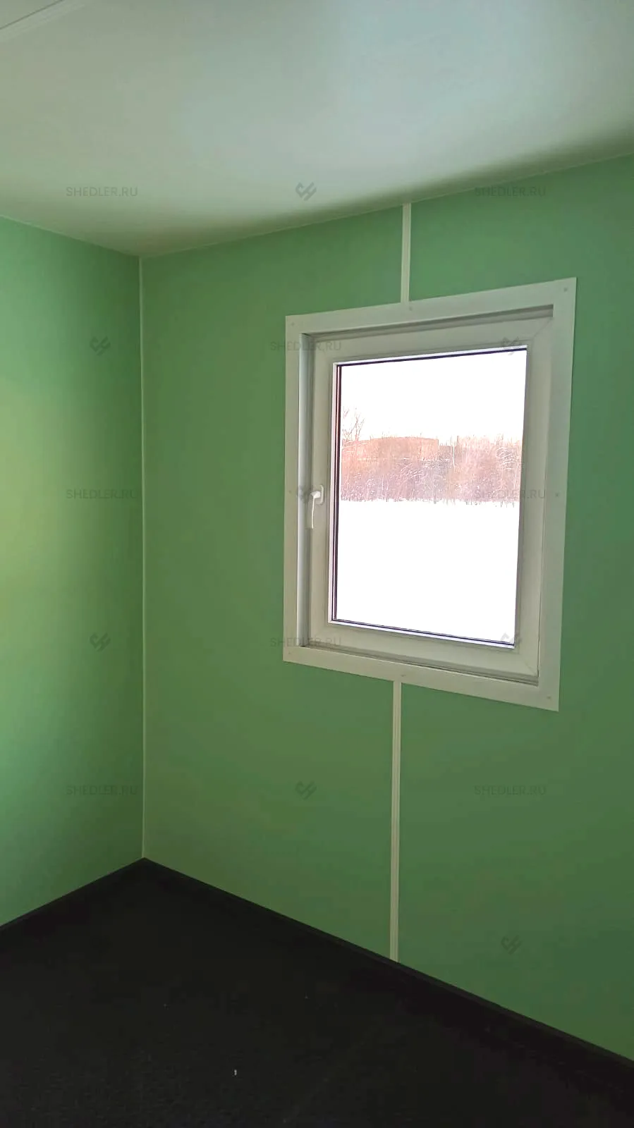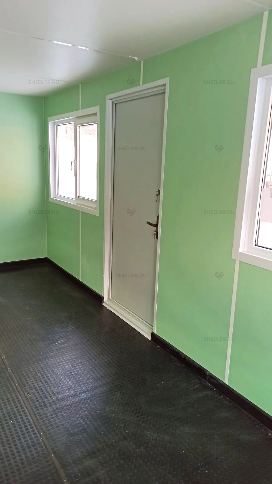 Внутри здание дополнили перегородкой, шестью внутренним металлопластиковыми дверями, семью ПВХ окнами и перегородкой в санузле. Установлены две металлические утепленные двери с врезным замком, а также 4 переносных огнетушителя ОП-5.