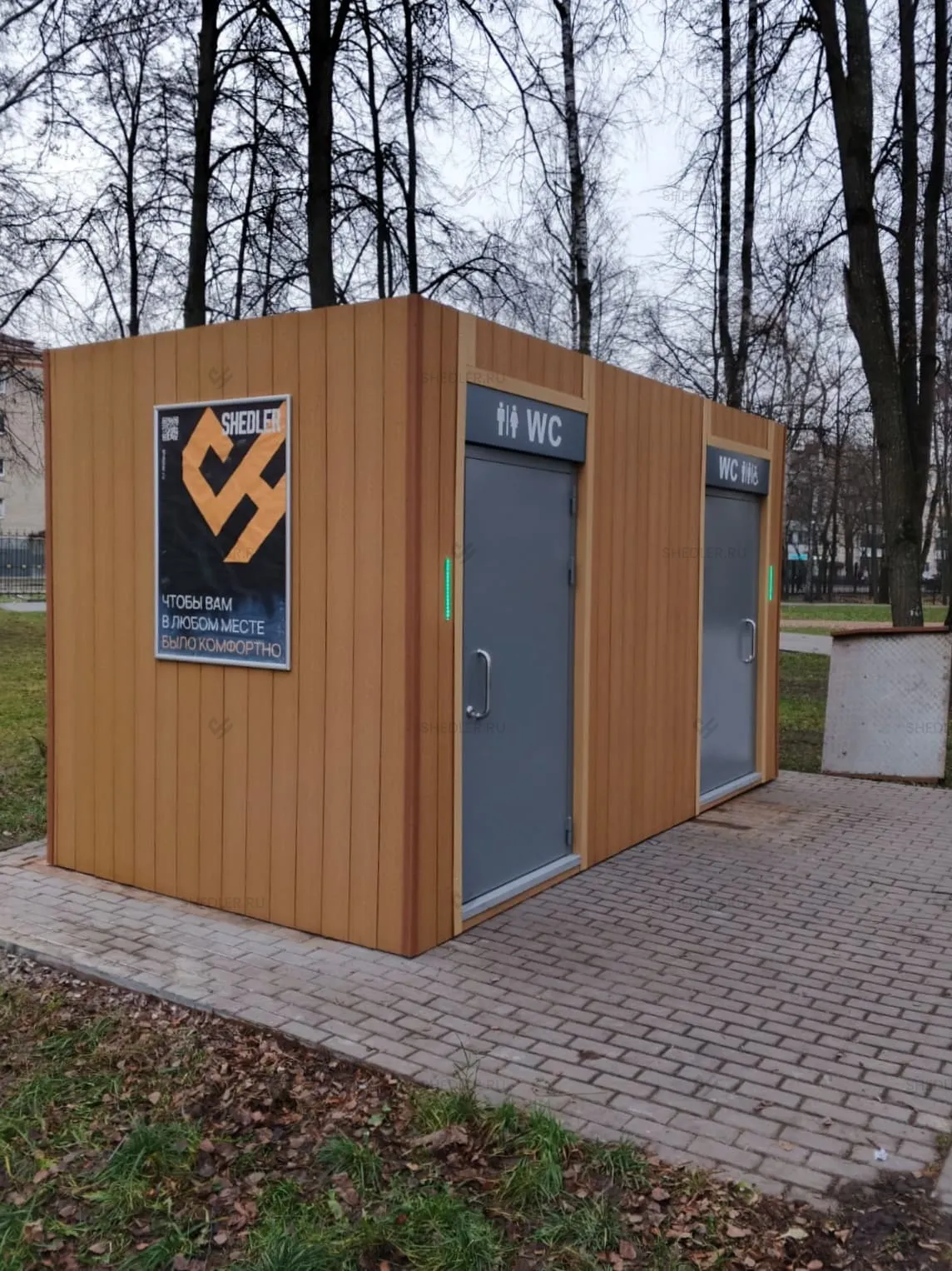 Для производства понадобилось 14 дней, после чего модульный туалет был доставлен в город Пушкино на объект заказчика. Клиент остался доволен, а компания Шедлер в очередной раз подтвердила свою компетентность и ответственность в работе.