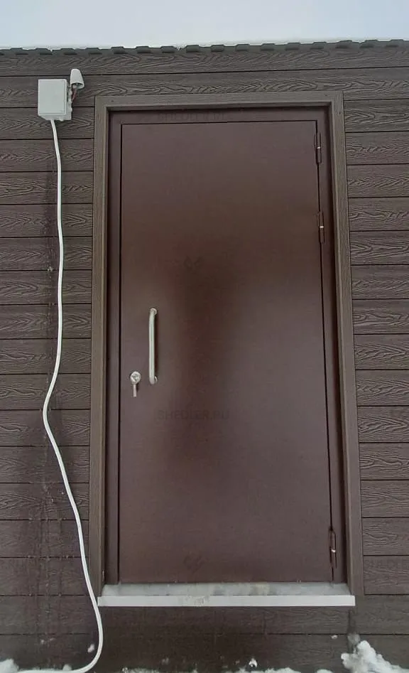 Наружная отделка модульного здания выполнена из сэндвич-панелей и древесно-полимерного композита, внутренняя – из сэндвич-панелей и нержавеющей стали. Дополнительно выполнена тепло- звукоизоляция пола материалом УРСА TERRA 100 мм, а также пароизоляция ветро-влагозащитной мембраной Гидропроф В. На полу уложен алюминиевый рифленый лист. Установили 3 металлические входные двери с замком.