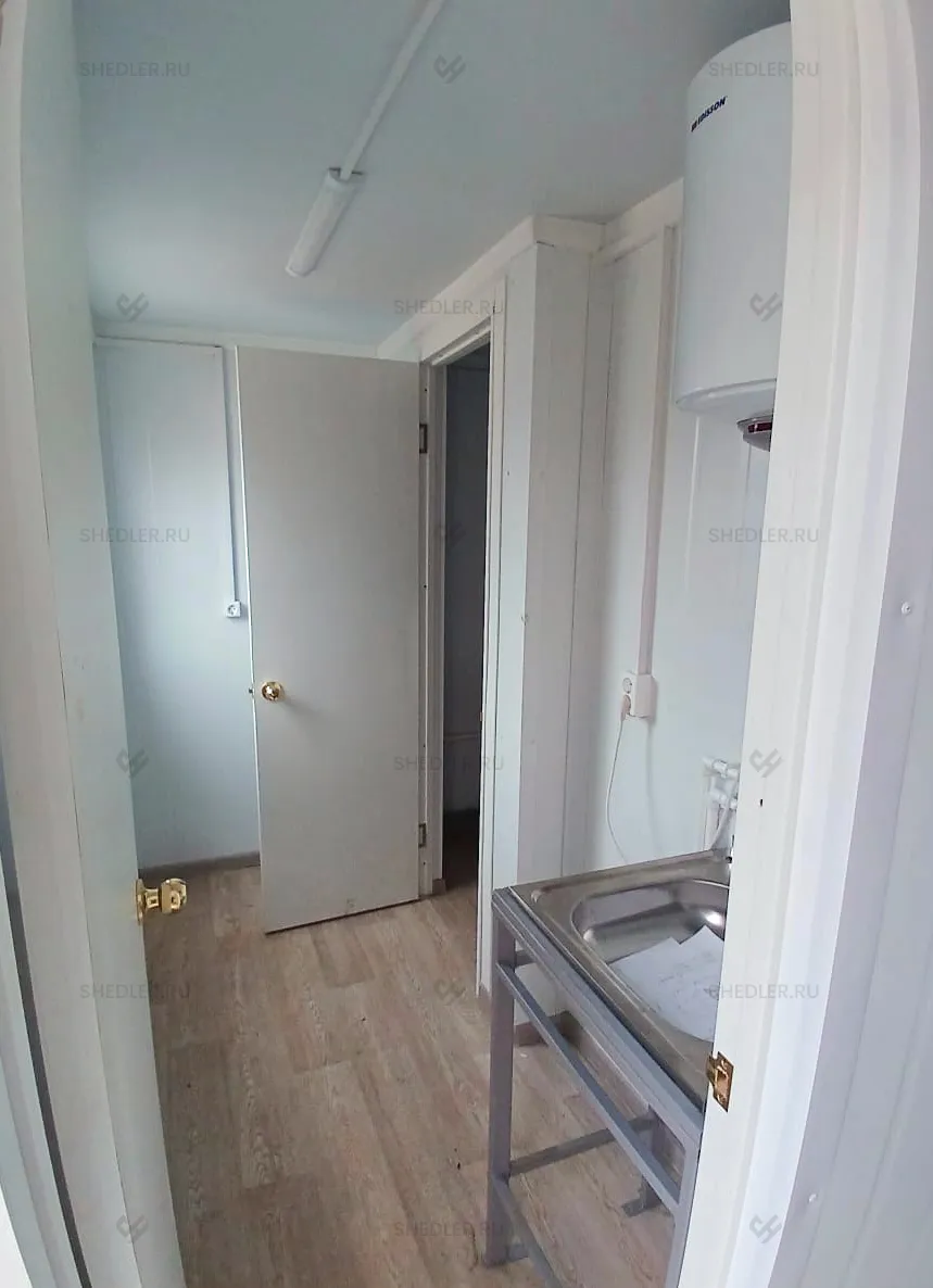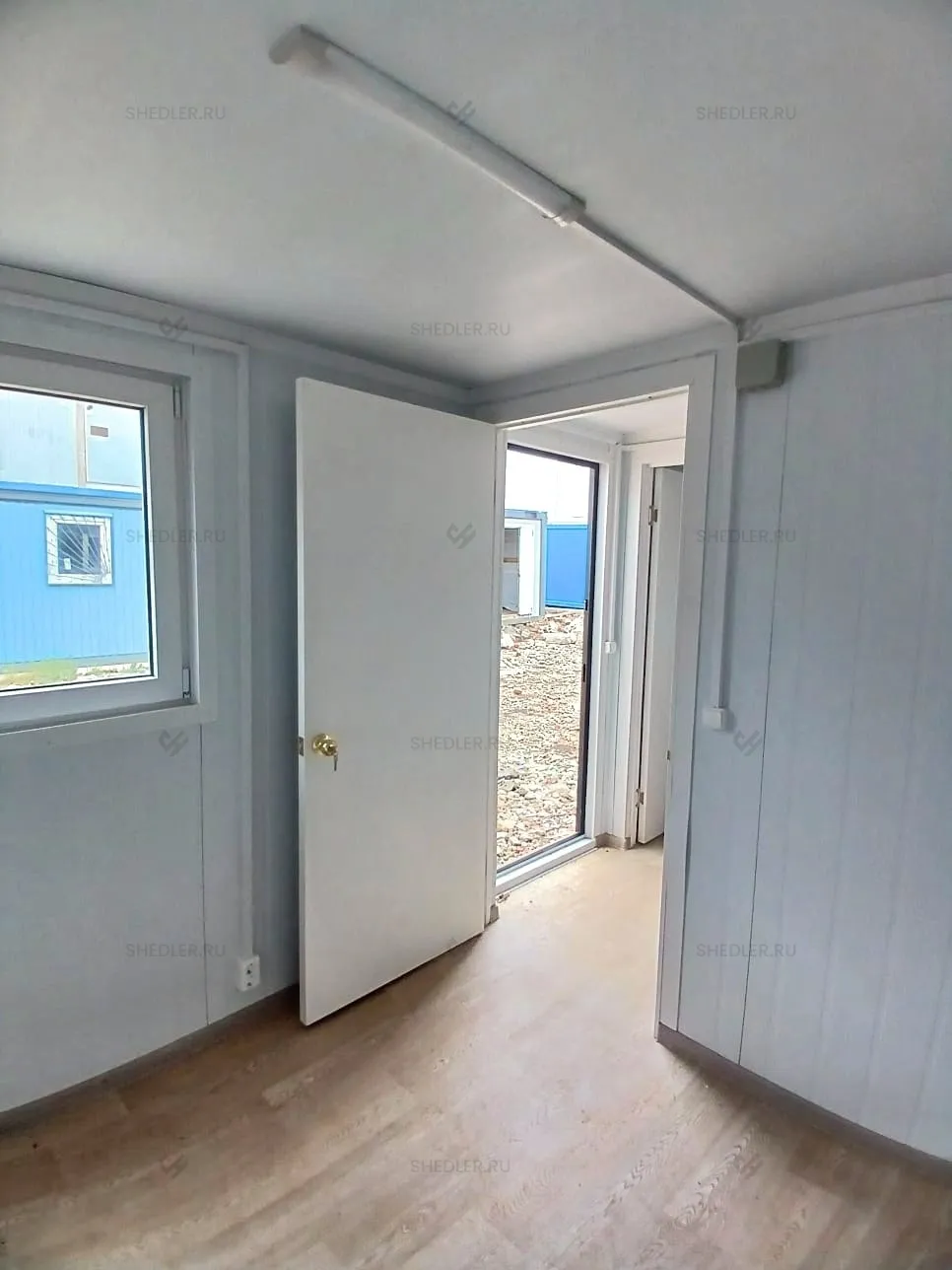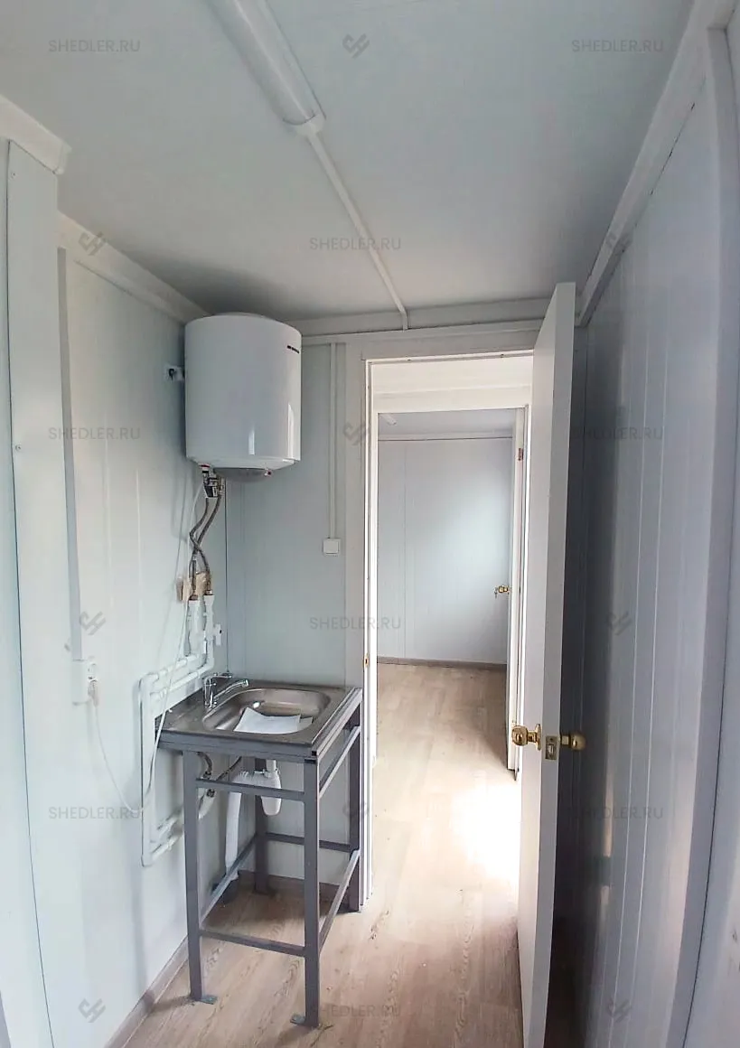 Внутри блок‑контейнер готов к дополнительной комплектации: установка мебели, кондиционера, системы отопления, пожарных датчиков – все комплектующие доступны в SHEDLER. Также возможно подключение инженерных систем – электрики, розеток, освещения по индивидуальному запросу.