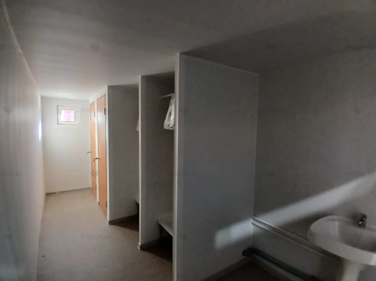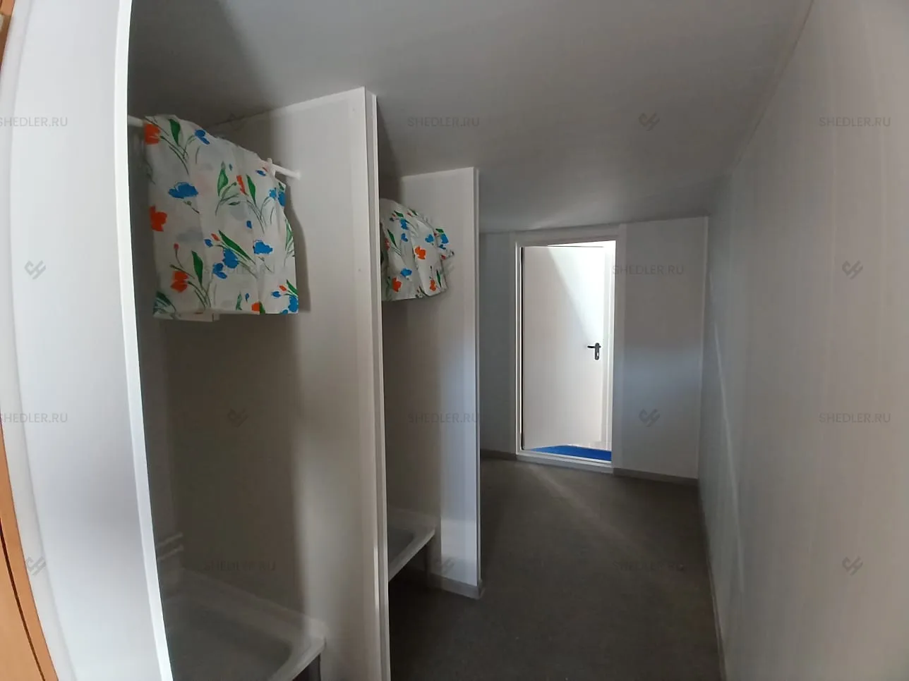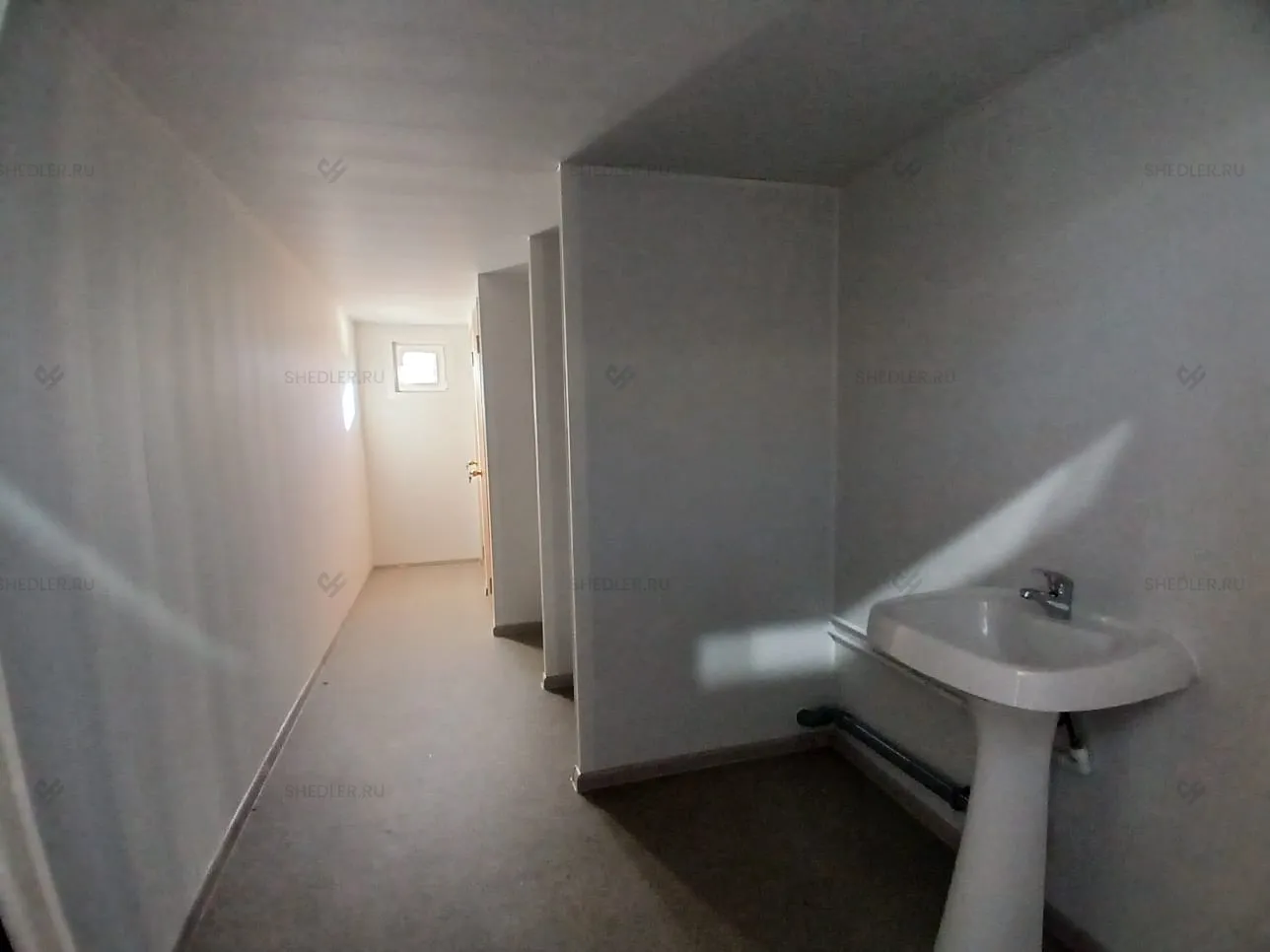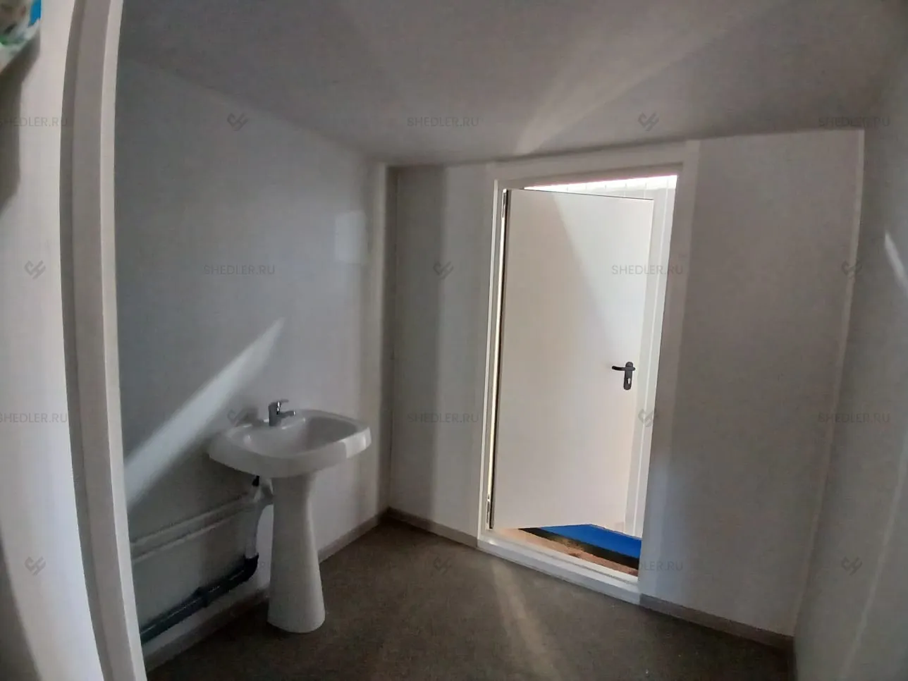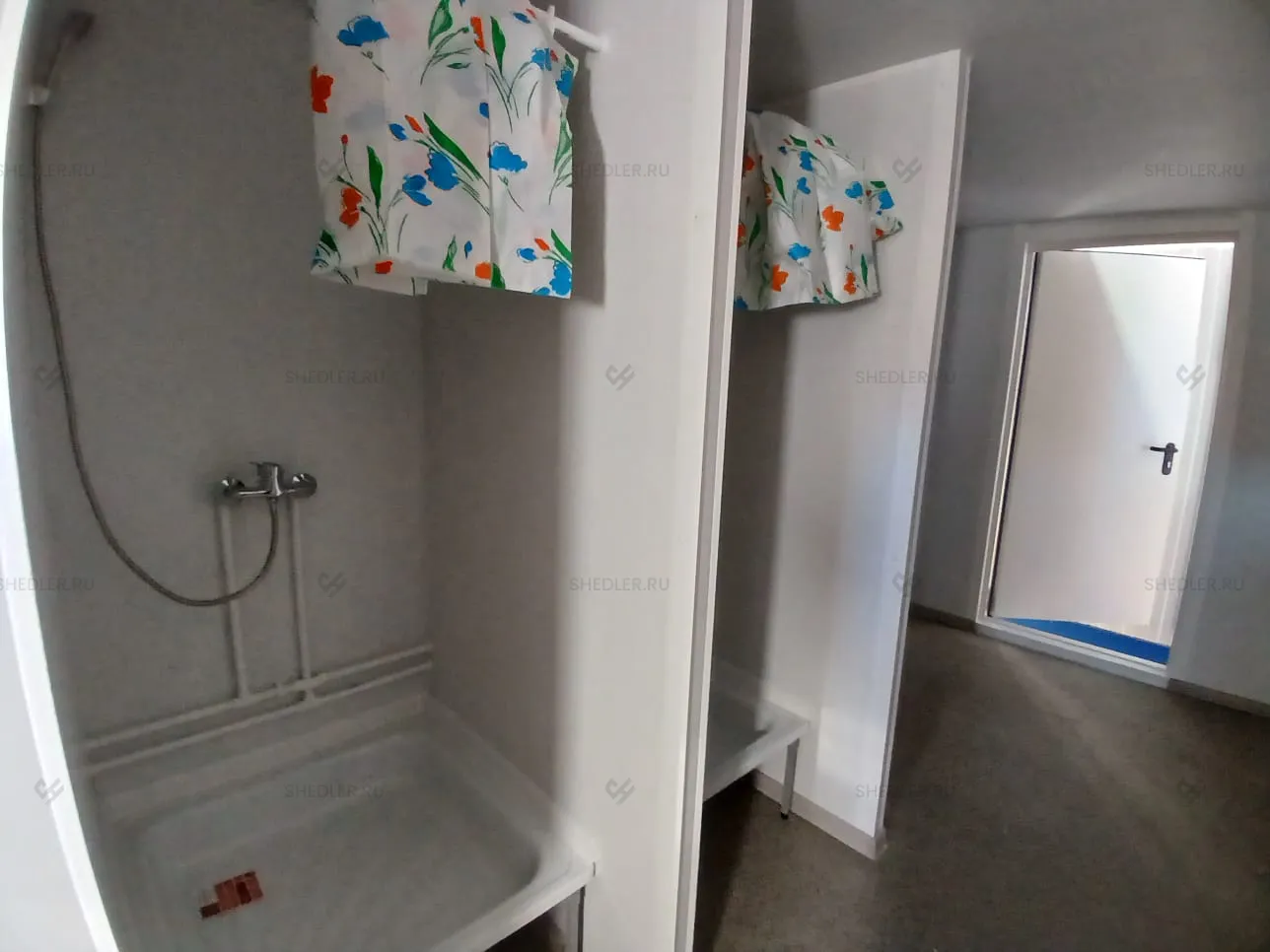Для выполнения санитарных нужд установлены 2 туалетные кабинки, 2 душевых поддона и одна раковина. Вся электропроводка, водопроводные трубы и канализационные стоки уже вмонтированы. Конструкция полностью готова к использованию.