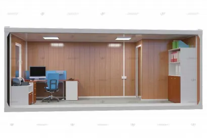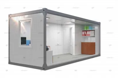 Стены контейнера состоят из трехслойных сэндвич-панелей толщиной 100 мм с утеплителем, что позволяет поддерживать комфортную температуру внутри помещения в любое время года. Внутренняя отделка на выбор: практичные МДФ панели, износостойкие ЛДСП плиты или влагоустойчивые ПВХ панели. Пол выполнен из ОСБ плит толщиной 20 мм, уложенных на металлические лаги и покрытых износостойким полукоммерческим линолеумом.